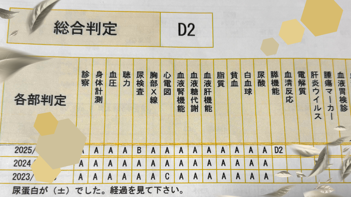 オレの身体は結構、丈夫な部類だと思ってたが、去年の10月に受けた会社の健康診断で異常あり【D2判定】を食らってしまったのだ…